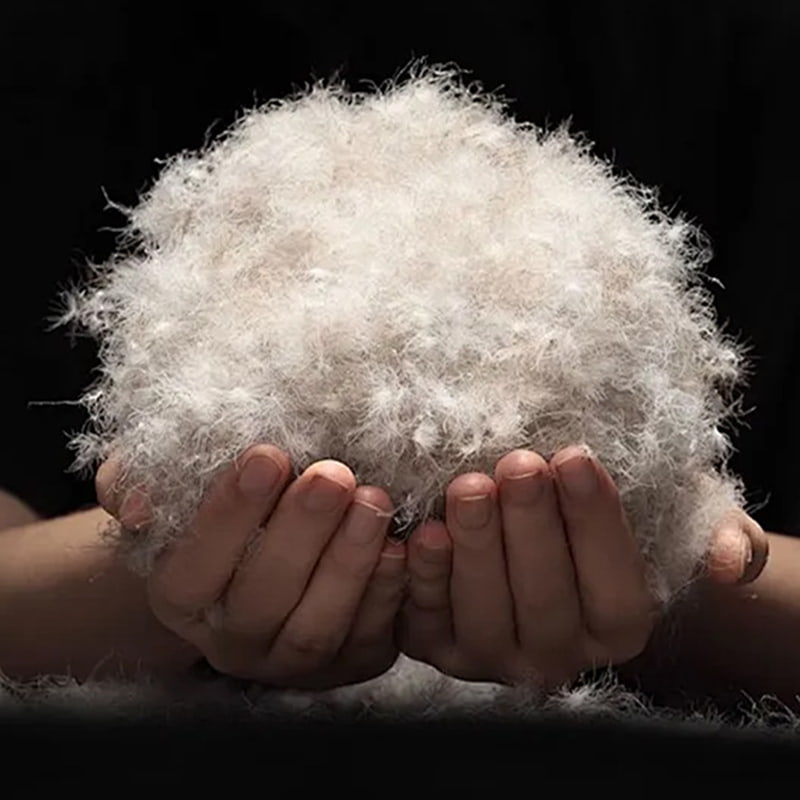 Les principales zones productrices de duvet de l'abdomen et du cou des canards gris sont soigneusement sélectionnées, et un processus de ratio scientifique est utilisé pour combiner 50 % de duvet de canard gris à haut volume et 50 % de fibres de plumes de haute qualité pour former une structure composite naturelle et chaude. Le duvet a la forme d'une grappe de roseaux tridimensionnelle, et la surface de chaque duvet est densément recouverte d'une grille de pores triangulaire précise pour construire un système de microcirculation de contrôle dynamique de la température - lorsqu'il fait froid, la fibre s'enroule naturellement pour former une couche d'isolation de l'air, et lorsqu'elle est chaude, la fibre s'étire pour favoriser l'évacuation de l'humidité, réalisant une double régulation intelligente de la température et de l'humidité. La structure unique en fibres creuses peut absorber efficacement la chaleur émise par le corps humain, tout en formant une barrière d'isolation thermique naturelle, bloquant efficacement l'invasion des courants froids externes et apportant juste la bonne expérience de lumière et de chaleur.