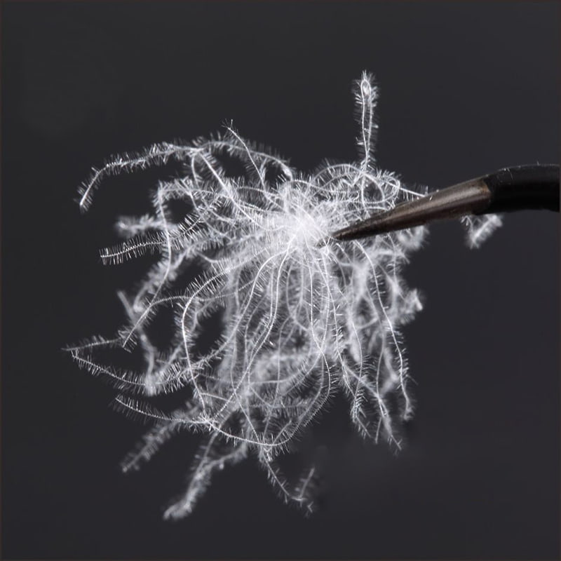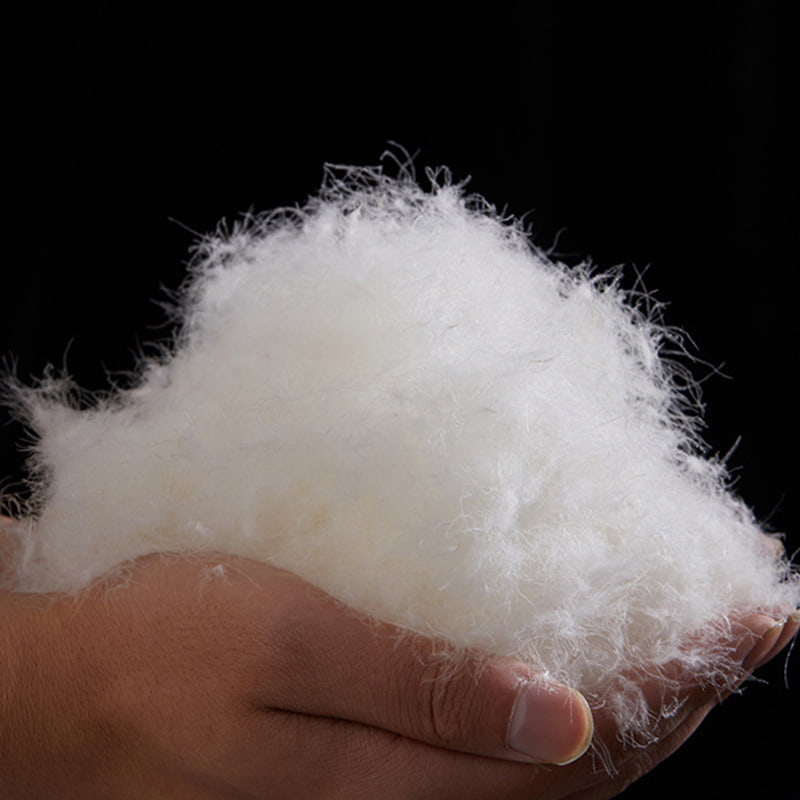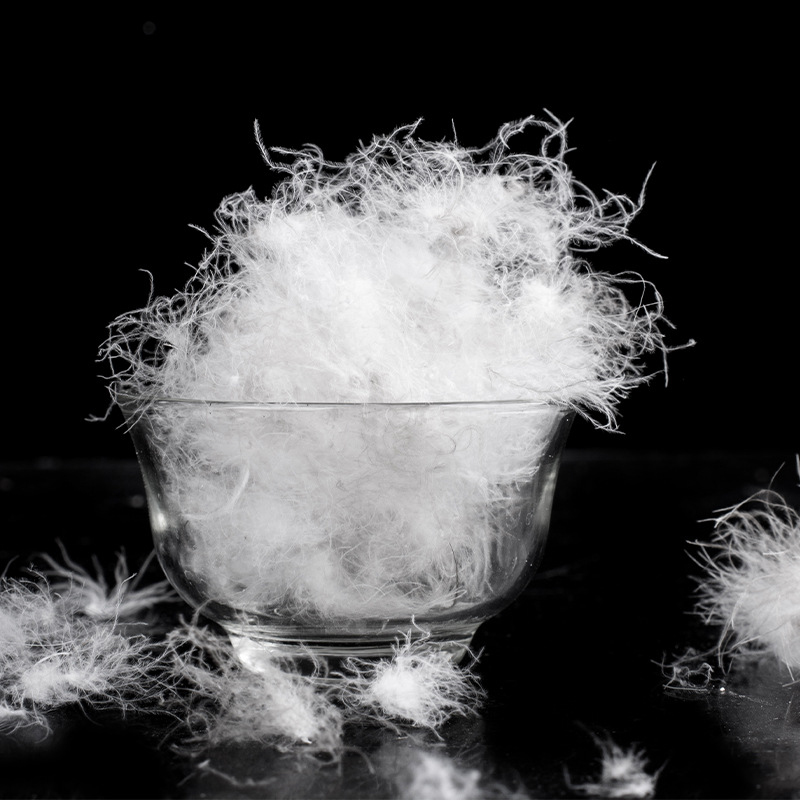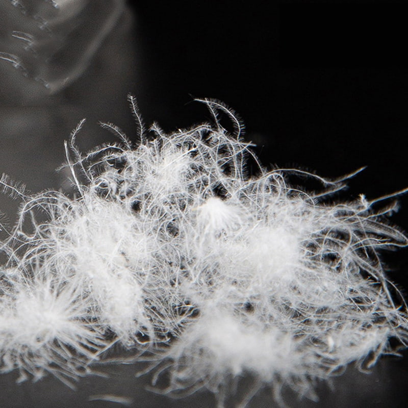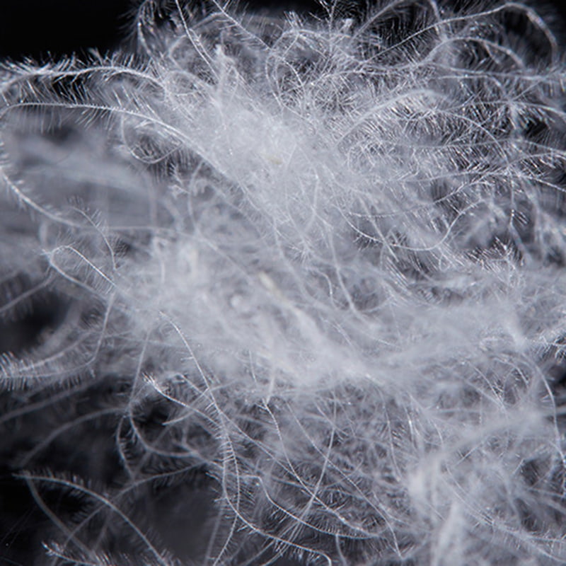 Provenant de l'abdomen, du cou, des ailes et d'autres parties productrices de duvet de haute qualité du canard, le duvet présente une forme naturelle en grappe semblable à un roseau avec un excellent moelleux ; complété par des plumes feuilletées précisément proportionnées, il construit une structure tridimensionnelle de verrouillage de la température. En tant que fibre naturelle de protéines animales, la structure du duvet est densément recouverte de millions de pores triangulaires à l'échelle nanométrique, formant un système respiratoire dynamique. Lorsqu’il fait chaud, la fibre s’étire pour libérer de l’énergie thermique, et lorsqu’il fait froid, elle se rétrécit automatiquement pour emprisonner la chaleur. Tout en absorbant efficacement la chaleur dissipée du corps, il bloque la pénétration de l'air froid externe pour obtenir un contrôle intelligent de la température par tous les temps. Léger, doux et chaud, près du corps sans pression.