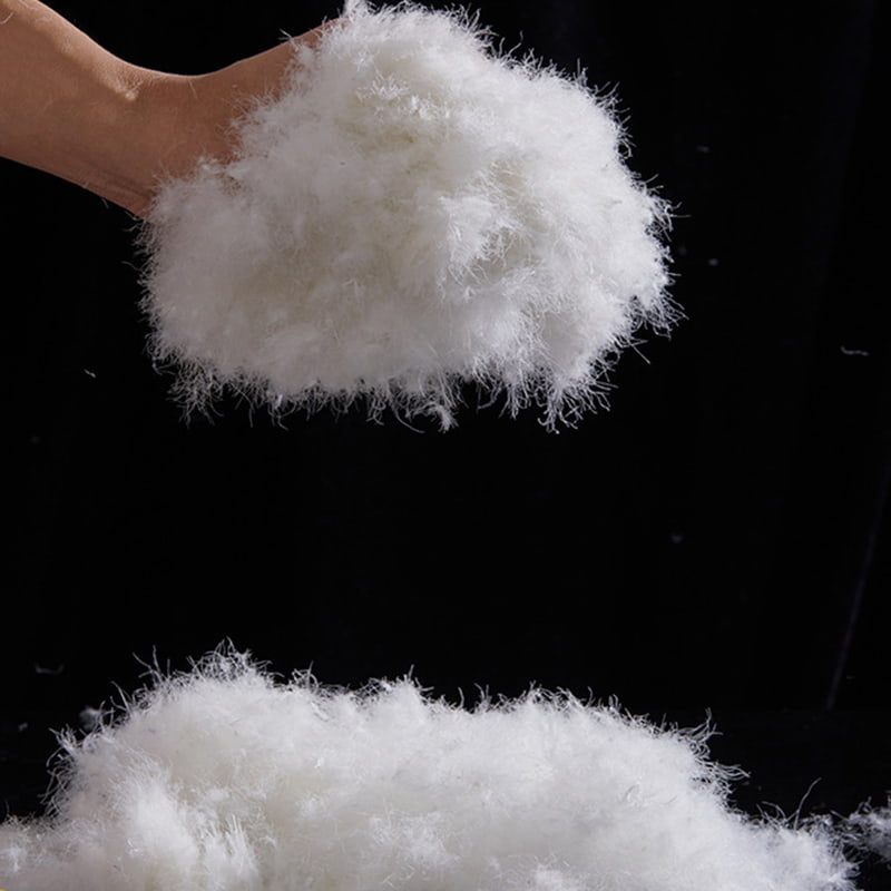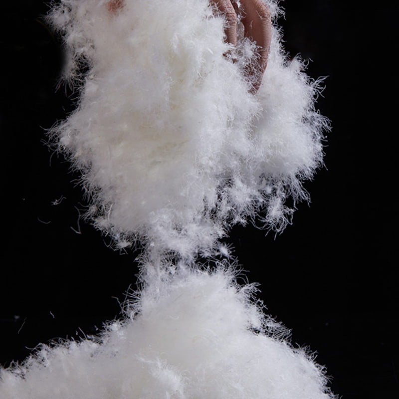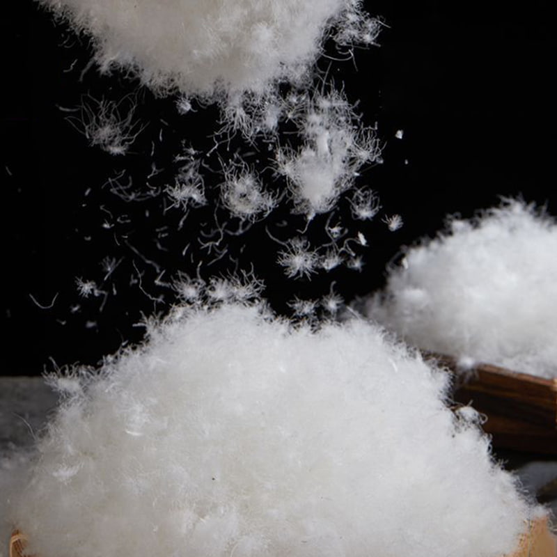 Issu des zones principales de production de duvet des oies blanches - l'abdomen, le cou et les ailes, le duvet naturel a une structure moelleuse, qui est scientifiquement associée aux plumes écaillées pour former une excellente combinaison de maintien de la chaleur. En tant que fibre de protéine animale haut de gamme, chaque fibre de duvet d'oie est recouverte d'un réseau de pores triangulaires à l'échelle nanométrique. Cette structure précise lui confère d'excellentes propriétés de contrôle de la température et peut ajuster intelligemment l'espacement des fibres en fonction de la température ambiante pour former un système de contrôle dynamique de la température. Lorsque l'énergie thermique émise par le corps humain entre en contact avec la couche de duvet, la structure des pores peut absorber efficacement la chaleur et former un cycle thermique, tout en construisant une barrière d'isolation thermique multidimensionnelle pour bloquer efficacement la pénétration de l'air froid et créer une expérience de port chaud et durable.